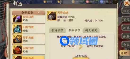 建筑等级越高可修理装备等级越高,使用装备修理可以不降低耐久度上限。