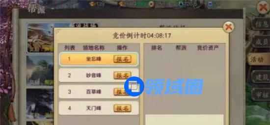 每个战场只有竞价前两名的帮派可以进入,因此需要随时掌握其他帮派的竞价资产动向;