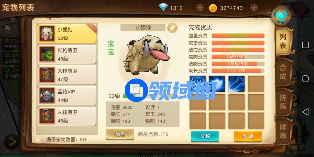 宠物十分很多种的,有野生,宝宝以及变异的,三个的资质都不同的,变异的宝宝更厉害,不过也是可以合成的;