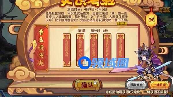 洛克王国文识考验答题攻略。今日开启的答题环节让很多人都变得无比激动,里面的各类题目都有着不错的挑战力,但是题目的类型非常广泛,让人很难有大的了解,所以会遇到诸多困难。下面就为大家带来洛克王国曹丕诗词题题库正确答案分享。