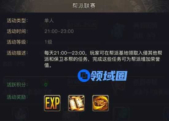 3、帮派联赛活动于除周六外的每日21:00~22:00开启,持续1小时。