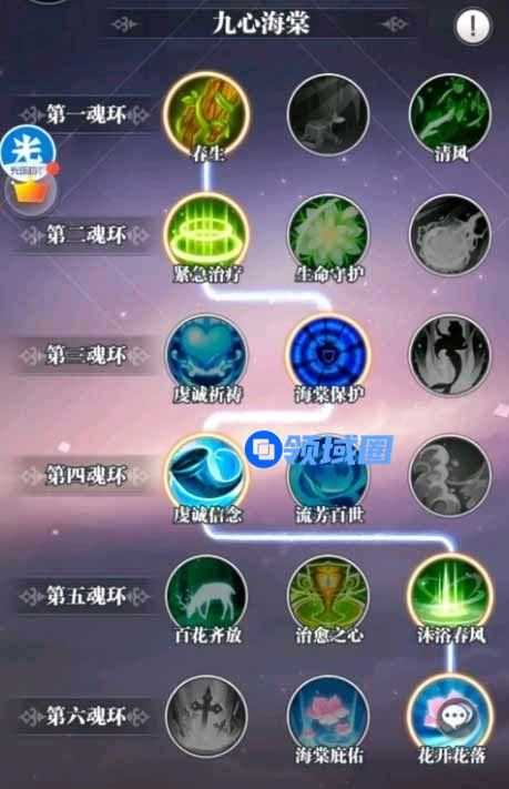 九心海棠的治疗能力和解负面状态能力,是非常优质的一个武魂能力,在中期和后期的推图或者pvp中,自身的输出基本已经达到一个饱和度,当己方的回合结束后,敌方回合的一系列技能是非常痛的,己方的奶妈的治疗能力很多时候无法兼顾到五个队友,这时候,九心海棠的优势就体现了出来,大大增加了阵容的续航能力,保证了c位魂师的输出能力。