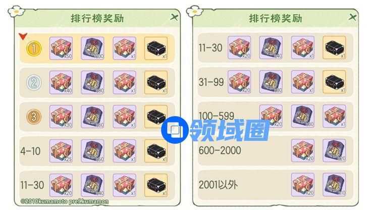 参加活动的村民可获得丰厚的游戏奖励,其中积分排行榜前99名还可获得熊本熊雨衣礼包和熊本熊·英雄本色箱,在自宅放置本色箱可召唤迷你熊本熊。