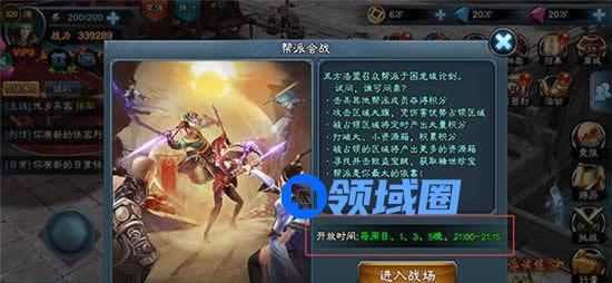 在每周1、3、5、7晚上9点,主界面的“帮派会战”会发光,同时也会有跑马灯提示帮派会战开启。