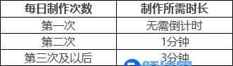 2-每日首次制作(0点刷新)无需耗时,从第二次开始需要等待一定时间: