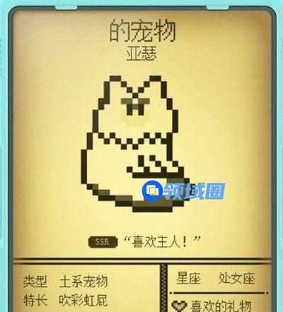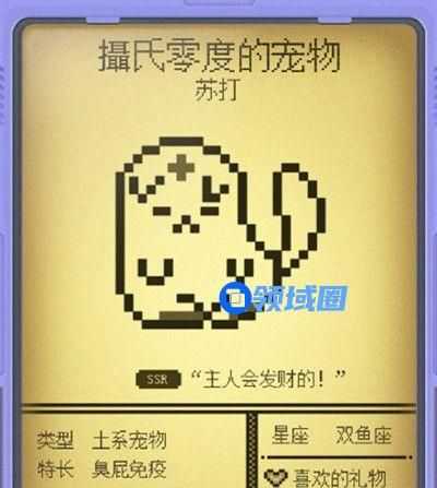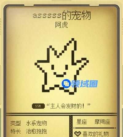 宠物还具有SR、SSR等稀有度的划分,并且会具有自己的属性、元素系别、特长、星座、喜欢的礼物等等。