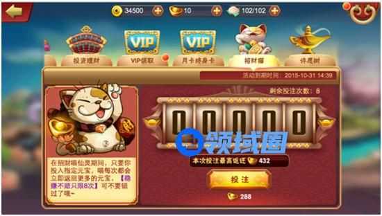 开服的前3日还有“疯狂的招财猫”活动,玩家只需下注指定数额的元宝,系统必定返还“更多元宝”,稳赚不赔!