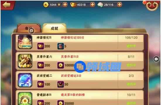 点击右上角的下拉角标,即可看见系统的入口!点开就会发现“每日任务”和“成就系统”,其中“每日任务”是每天重置,只要每天都完成指定内容,即可领取元宝奖励。而“成就系统”则是伴随主公成长的奖励体系,每完成一项成就即可领取一次任务奖励(每项成就只能完成1次)。
