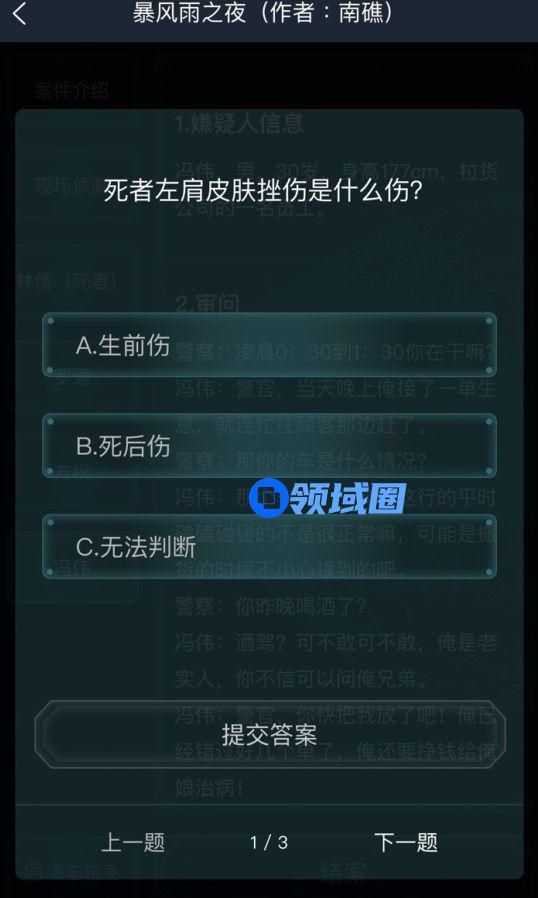 A:生前伤、B:死后伤、C:无法判断