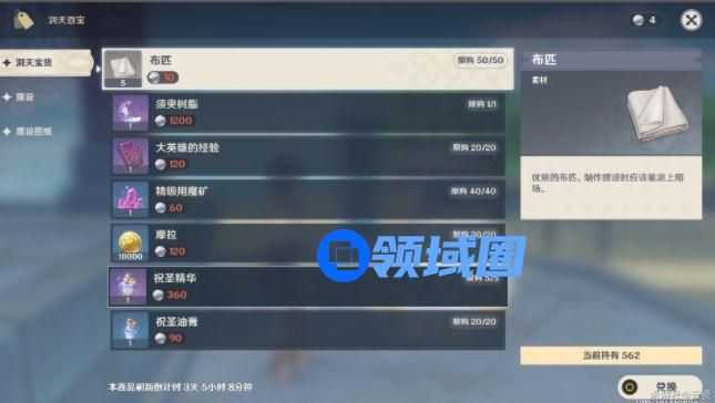 一、布匹和魔矿是收集制作产物,可以不消耗树脂获得。