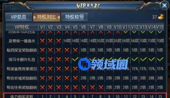 (2)vip可增加购买体力的次数,vip等级越高可购买体力的次数越多。