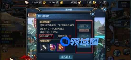(3)扫荡也需消耗体力,消耗值与上相同,但可根据vip等级消耗体力进行不同次数的连续扫荡;