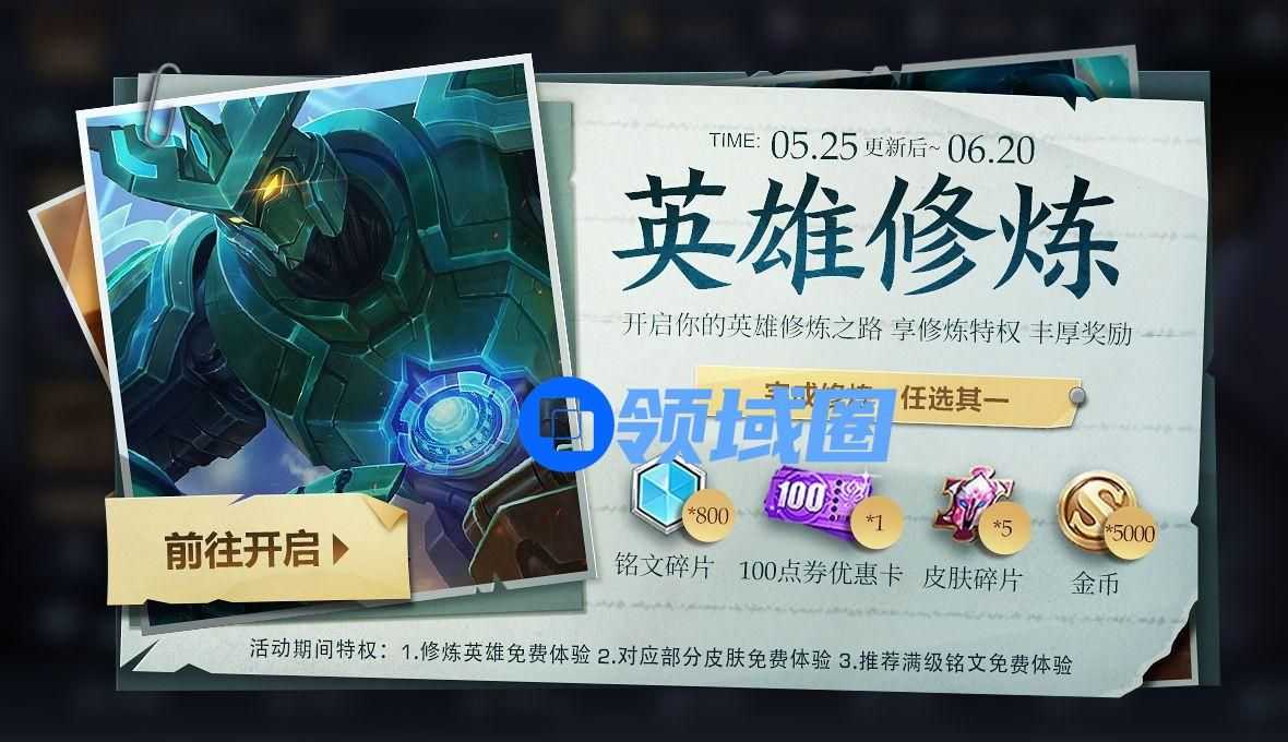【专属梦境】英雄修炼活动时间:5月25日更新后-6月20日23:59