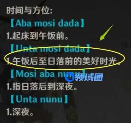 从丘丘语手册中我们可以看到“unta mosi dada”指的是“午饭后至日落前的美好时光”