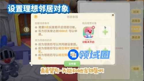 如果上述条件都达到之后,小伙伴们就可以申请成为彼此的邻居了。值得一提的是,如果遇到心仪的邻居对象,我们还可以将对方加入到【我的理想对象】中,这样我们在申请邻居的时候,就可以看到自己的理想邻居对象身上带有特殊标记。