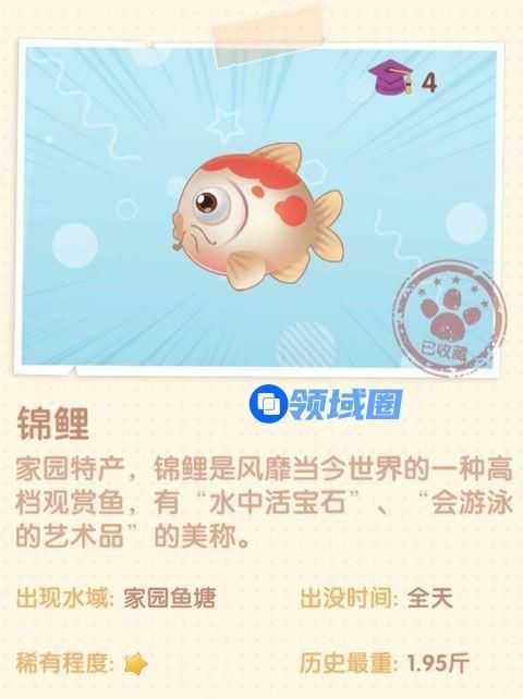锦鲤:家园鱼塘的特产,全天刷新,需要前往家园或者好友家园钓鱼获得;