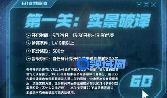 晋级条件:自任务计算开始最快破译的前800名任务开启后所有LV5以上侦探均可进入赛场内参赛。