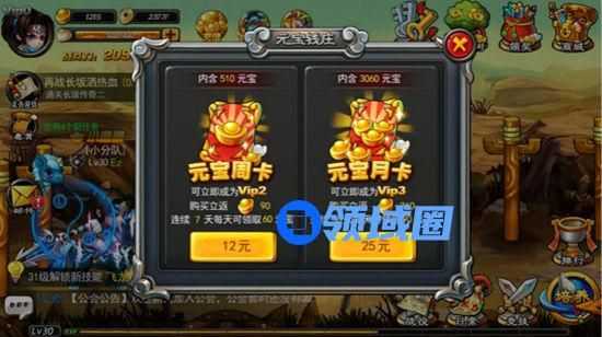 元宝钱庄中分为元宝周卡和元宝月卡