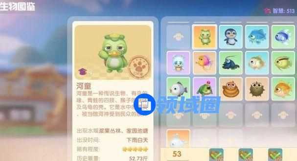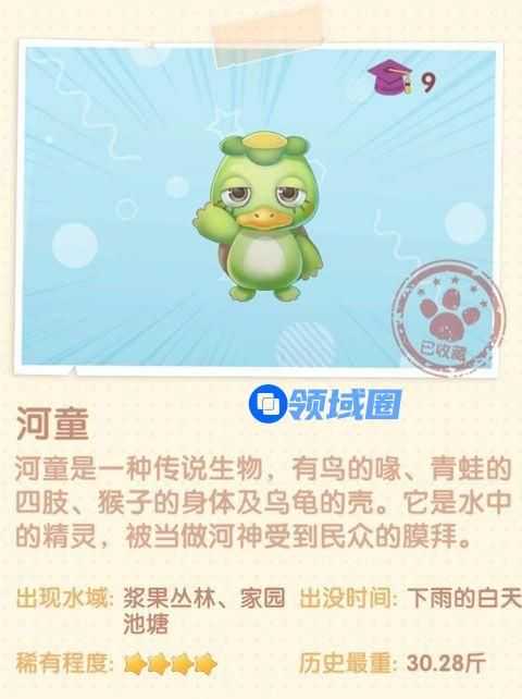 河童出现的位置是在浆果丛林和家园池塘,出没时间是白天,也就是6:00-19:00,此外,河童出现是有天气限制的,需要是下雨的白天才行,大家准备好鱼竿和鱼饵,然后就可以到浆果丛林,或是家园池塘钓河童了。还有一点要注意的是,除了家园池塘外,其他的几个钓鱼点每天是有次数上限的,每个场景可以钓101-103次,达到上限后,会提示“今天在哪里已经钓很多鱼了,换个地方吧”,得第二天次数刷新后才能继续钓鱼了。