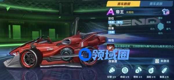 帝王特性:漂移后可以获得5%集气并且有25%概率可以增加小喷的动力。