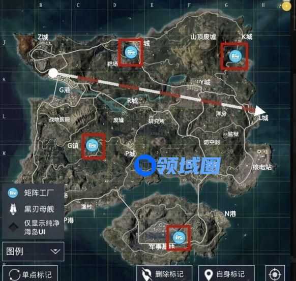 矩阵工厂是重启未来版本中,海岛地图新增的一个常规资源点。每次进入战场,会有4个矩阵工厂刷新。刷新地点是固定的,记好这4个地点,就可以先人一步,掌握资源。