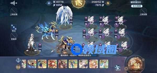 3、圣光挑战,每天固定免费挑战次数,免费次数用完,可花费钻石购买次数,次日5点重置次数;光明王将携带契约精灵作为第6人助战,击败敌阵即可通关。