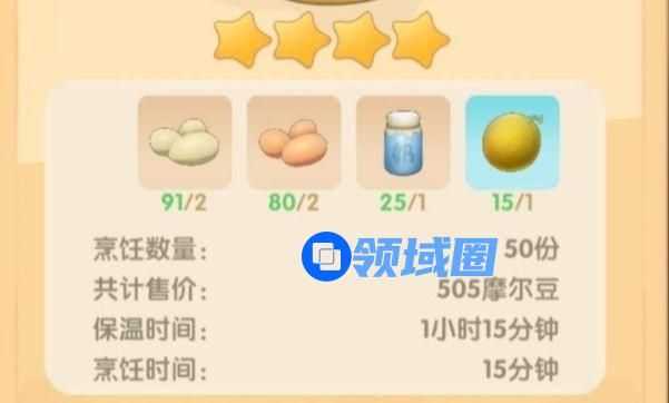 1、月亮酸奶雪糕为5星稀有度的料理,有着一定的制作难度,但价值很高;
