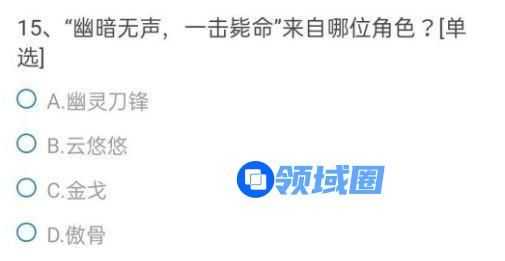CF手游幽暗无声一击毙命来自哪位角色?每一道问题对于你来说都是一次考验,很多玩家对于体验服也是充满了很多的期待,纷纷想要获取一分资格,进入其中去看看到底有什么特别之处,这也是很多人都想要搞清楚的事情。下面为大家带来CF手游幽暗无声一击毙命题目答案介绍。