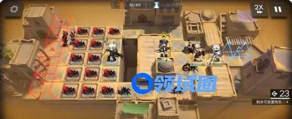 开局门口放拉普兰德,前面补一个塞妈,高台补一个群法,这个是必要的,不然清怪效率不高容易漏掉,在cost足够的时候空降银老板开真银斩即可。