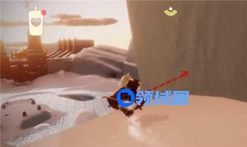 首先溜冰场悬崖这里刹住车,往右边走。