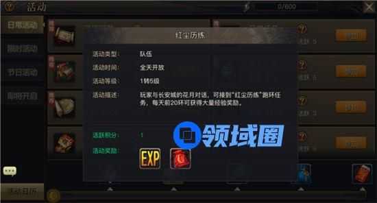1、每天前20环红尘历练将获得大量经验,20环之后也可以继续完成,但经验和道具获得都会大量下降