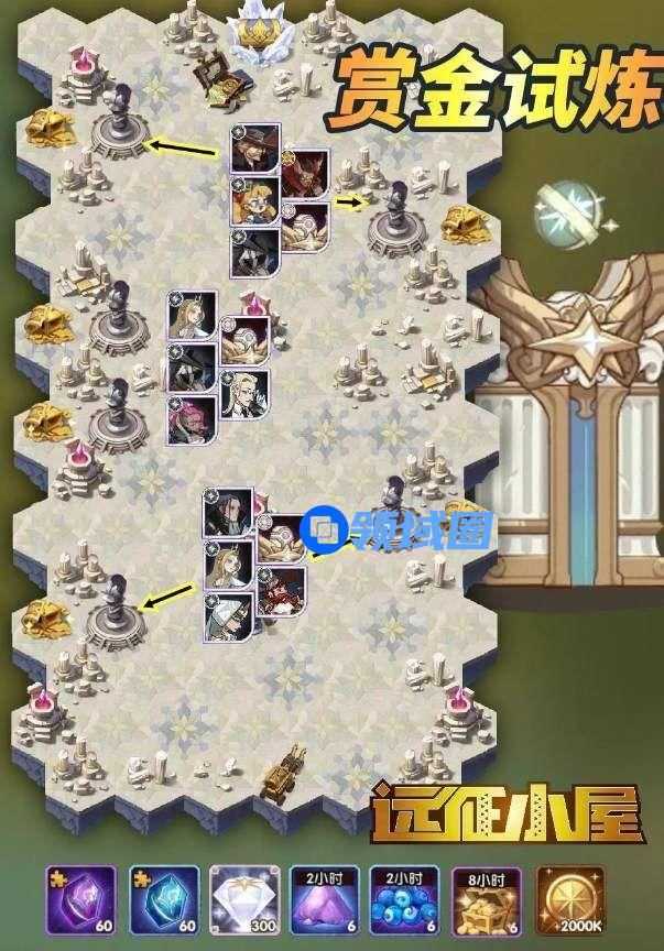提比略的赏金试炼推荐阵容可以参考下图所示,如果玩家没有新英雄的话那么挑战起来对于整体阵容的练度要求会比较高。