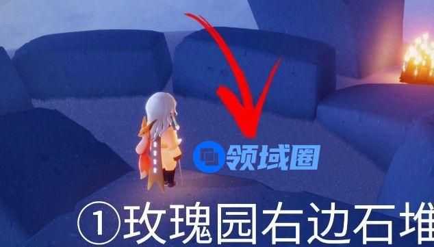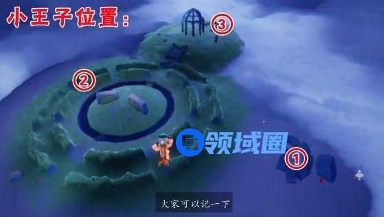 小王子第一次藏在玫瑰庄园右边的石堆旁边,具体位置可以参考图片: