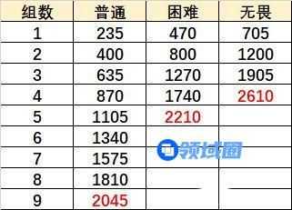 第1组(只刷一次):积分普通235,困难470,无畏705
