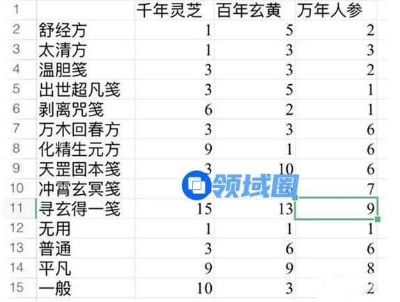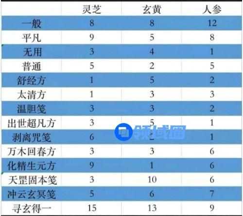 1、太清方药方是133,也就是1个灵芝+3个玄黄+3个人参。