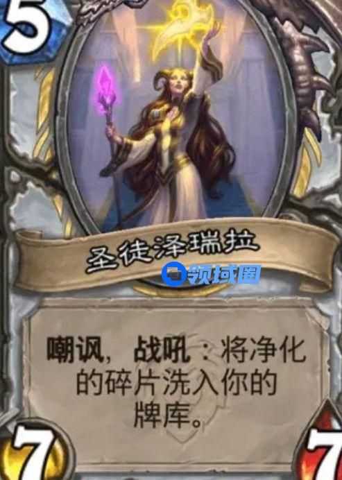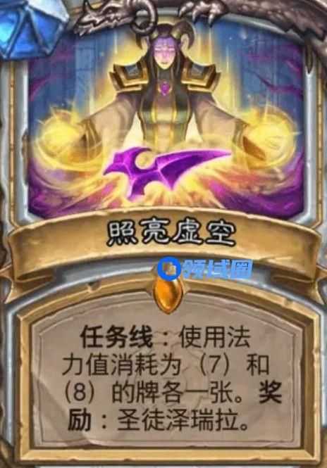 初始任务是消耗二三四费的牌各一张,奖励从你的牌库中发现一张牌。任务二是使用五六费的卡各一张,奖励从牌库中发现一张牌。任务三是使用七八费的牌各一张,奖励则是圣徒泽瑞拉。圣徒泽瑞拉,5/7/7嘲讽,战吼将净化的碎片洗入你的牌库。净化的碎片,十费法术,消灭对方的英雄。