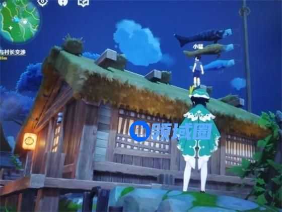 在绀田村西北边的传送锚点附近,我们看到一个带着面具,巫女打扮的人静静地站在一座狐狸石像面前,她告诉我们,她有一事相求。