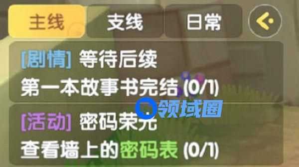 密码表在瑞琪后面,城堡门右边,你点任务会直接引导。如果不会引导,直接在前哨站就不动了,可能卡bug了吧,试试重上就可以了
