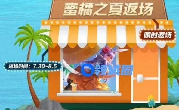 公孙离皮肤蜜橘之夏的返场,之前的时候就有消息爆料该皮肤要在这个夏天返场,当时还有很多玩家不信,现在具体的官方公告上线了,可以确定该皮肤即将就要返场,返场时间是在7月30日~8月5日,总共有七天时间,价格还是和原来一样,只要888点券,大家喜欢这款皮肤的话就要赶紧买,后面再次返场不知道要等到什么时候。