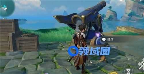 稻妻踏鞴砂神居岛崩炮要用雷种子附魔之后才能用,至于角度需要自己慢慢尝试,只要发射出去的大炮发光了就代表命中了。
