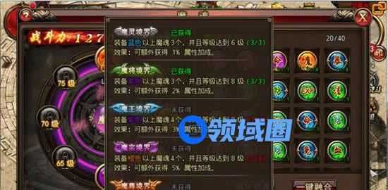 当装备魔魂达到一定条件后,即可获得魔魂境界的属性加成效果;