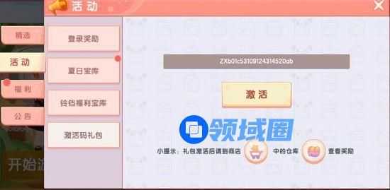 1、激活码如上图所示:ZXb01c53109124314520ab,在活动界面的激活码礼包中激活使用。