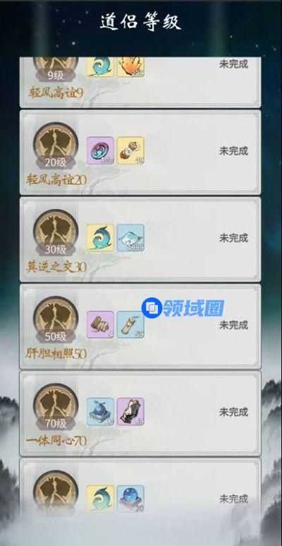 结成道侣后会有相应的等级,提升道侣等级则可以解锁专属特权