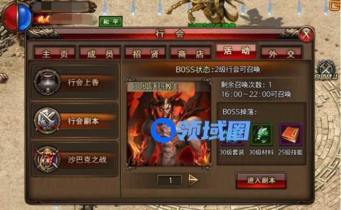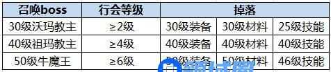 本会长和副会长会在每天16:00-22:00之间召唤行会boss,行会兄弟都可以在得到提示后进入副本,一起击杀boss。可召唤的行会boss跟行会的等级有关,高等级行会可以召唤出更多boss。