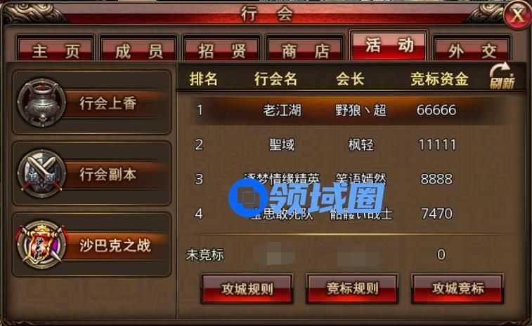 沙巴克城战是咱们玛法勇士的终极战场,刺激到大冬天打一场可以出一身汗。竞标规则和攻城规则都可以在行会界面找到。竞标时间为沙巴克城战开启周的周四9点到周六21点,竞标成功后兄弟们就可以摩拳擦掌不战不休了。