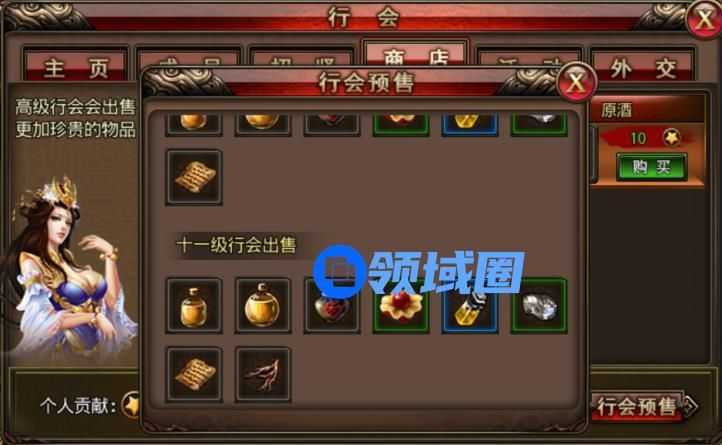 行会商店只有本行会成员可以兑换道具,兑换需要消耗行会贡献。行会商店可兑换的道具有:太阳水、强效太阳水、原酒、技能丹、攻击药水、黑铁矿石、技能书页、万年雪霜等。行会等级越高可兑换的道具就越多,所以,请感受下我诚挚的眼神,并记住每天上香哦~