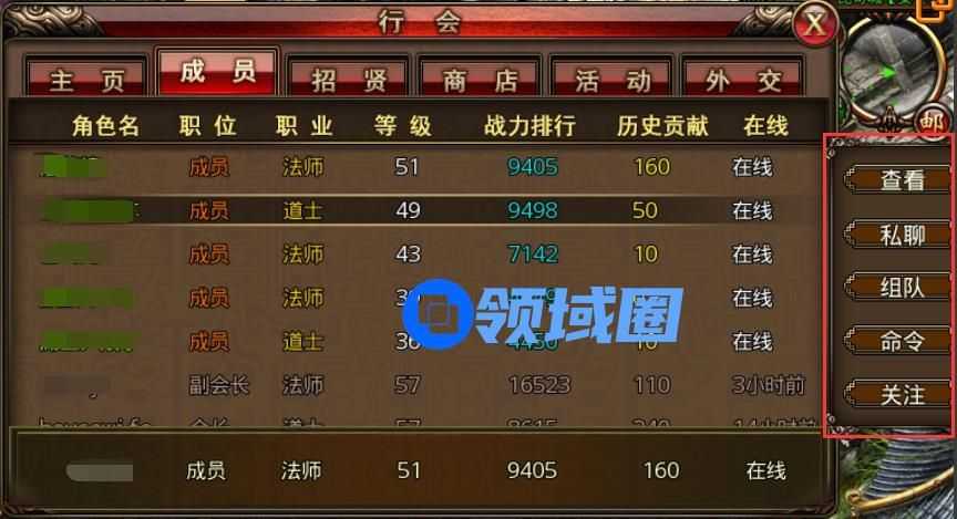 最后要嘱咐的就是多跟兄弟们交流,【行会界面】--【成员】可以看到行会的所有兄弟,看好哪个,想组(he)队(ti),想私(gao)聊(ji)都随你!