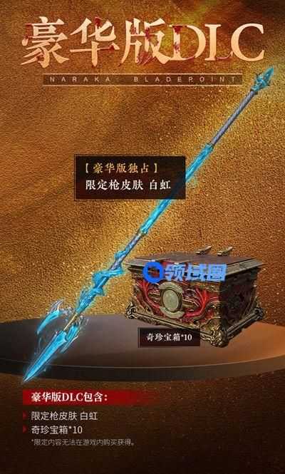 售价168的豪华版DLC,和国服预购版本相同,除了新英雄妖刀姬、绝版季沧海时装外还比标准版多出一个限定枪皮和10个奇珍宝箱,可以说性价还是比较高。
