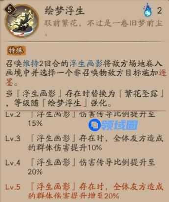 传导伤害机制类似草人,因此sp花鸟卷可能可以带全生命的狂骨荒骷髅/狂骨歌伎(歌伎吃攻击力不如荒骷髅直接增伤,但是多段数可触发帝释天金莲)