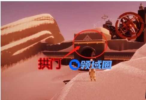 3、接下来注意,不要跑过头了,具体位置如下图。拱门上面的平台就是冥想的位置了。